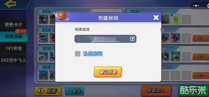 灌篮军团进入模式之后,会有两种组队方式可以让我选择,想要享受对战的乐趣,直接点击迅速加人即可,系统就会匹配实力相当的队友,可以秒速开局,不需要浪费时间等待。想要和好友一起并肩作战,直接选择创建房间,生成专属的房间码之后,然后分享给朋友,也可以组建专属的战队一起制定战术,可以迅速的增进感情。下面和酷乐米小编一起来看看吧