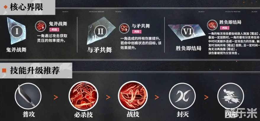 境界斑目一角是一个定位为强攻型的输出角色,这个角色适合在近距离的范围内对着敌人进行输出,在万解以后,她还会拥有全新的攻击方式,且所有的技能都将会被强化,聚怪能力非常的强,通过必杀技能够给敌人造成极大的爆发伤害。下面和酷乐米小编一起来看看吧