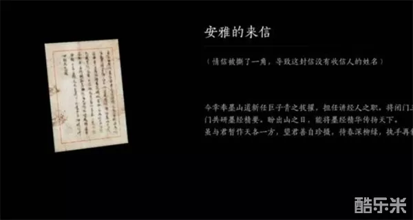 燕云十六声不见山奇遇洞中奇谈任务怎么完成,通过 栖鸟岩传送点 到达神秘人面前,旁听他的自言自语,了解基本情况,与他攀谈,得知其与安雅的情谊,对话结束后,打开两人的 书信,收集线索。下面和酷乐米小编一起来看看吧