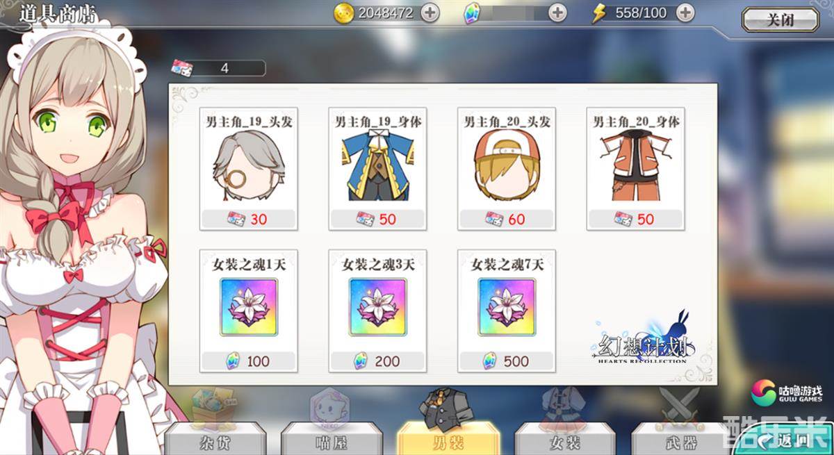 另外,幻想计划允许守护者们挑战试穿不同性别的衣服哦,在商店之中存在“蔷薇之魂”与“女装之心”道具,按照守护者的性别选择会显示为不同的道具,守护者使用该道具可同时穿戴男装或女装,从而诞生一大批女装大佬和男装小姐姐。