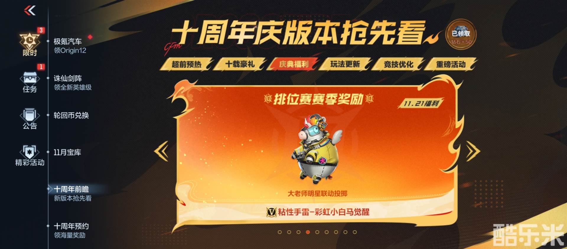 从11月21日新版本上线起,玩家登录游戏即可领取预热阶段的专属好礼。这些奖励包括限时皮肤、稀有道具等丰富内容。通过完成指定活动任务或参与抽奖机制,还有机会赢取珍贵的纯金火麒麟饰品。此外,钻石、点券等高实用性资源也将全面开放获取途径,助力玩家畅享周年狂欢。