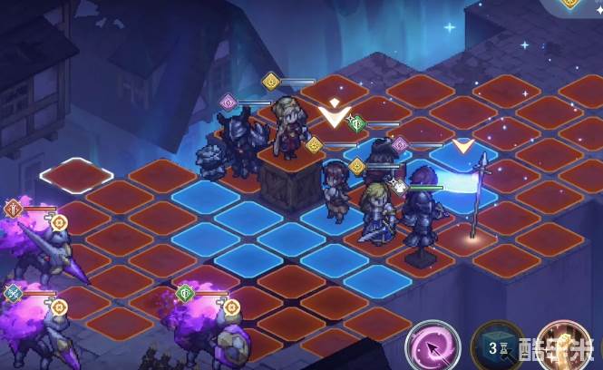 第三回合,伦迦勒移动力差一格,歌洛后退给上移动力,伦迦勒刚好可以秒塔。秒塔后BOSS会眩晕一回合,不用担心空缺。另外,艾达的箱cd好了,放中间解放剑盾小兵。