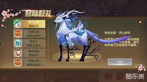 除此之外,在游戏中你还可以通过诸多方式获得各种不同的稀有坐骑,比如登陆第二天就能领取紫色坐骑——灵山神羊!灵山神羊是仙界灵山中的一种稀有神兽,行踪不定,十年难遇,据说它所踏之处能够枯木逢春!