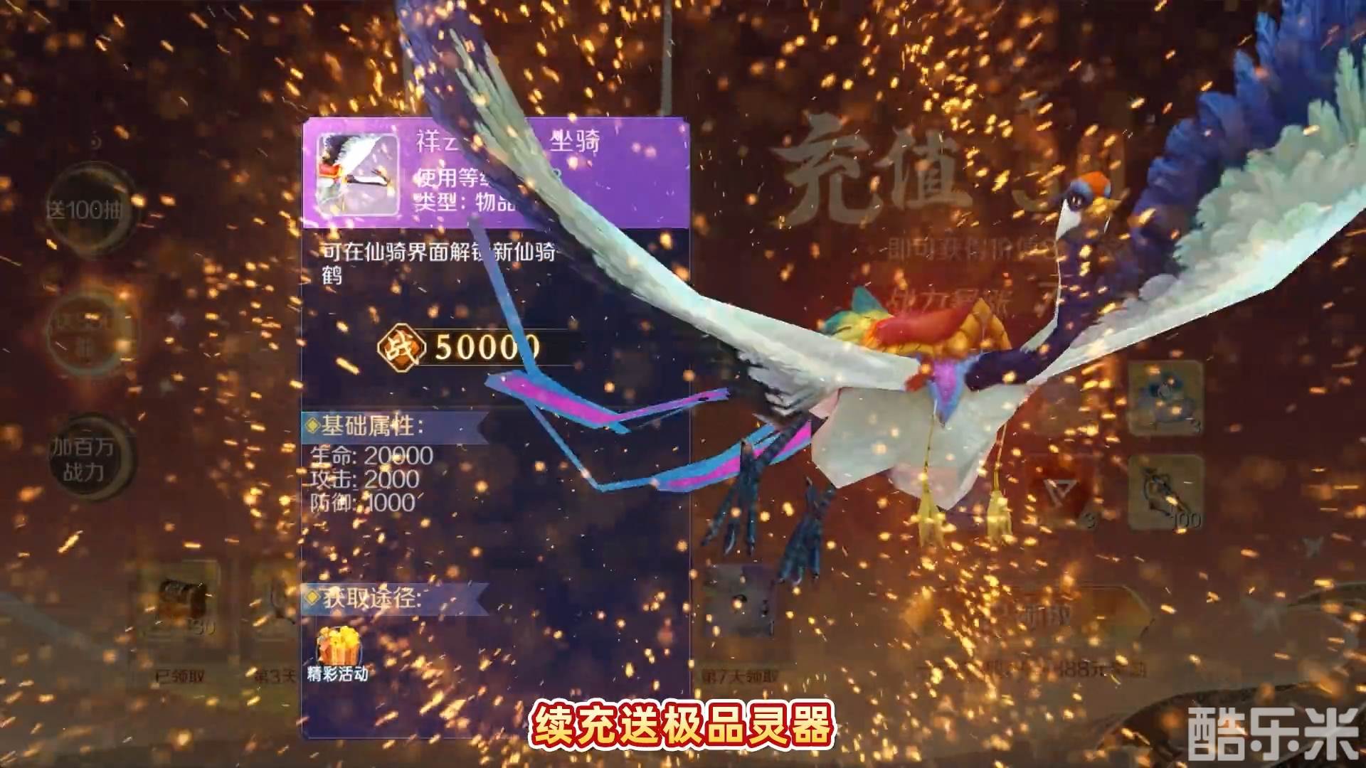 永久累充5000元(实付):鸿蒙自选宝箱*5,神器强化石宝箱*3,神器附灵石宝箱*3元宝*2000000
