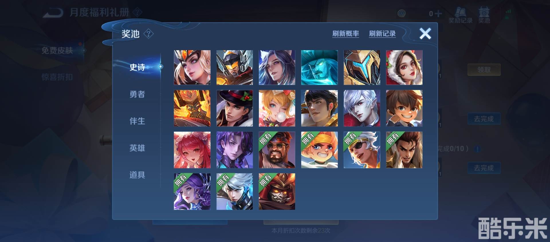 保底机制对玩家来说还是很实在的,累计刷新120次就可以获取之前没有拥有的史诗级别皮肤。福利还是比较实在的。另外,如果刷到已经拥有的勇者皮肤,也并不需要觉得可惜,系统就会自动的替换成4张积分夺宝抵用券,可以积少成多。说不定用抵用券就能有机会拿到荣耀水晶。这里也有一个时间点需要记住,10月份的活动在10月31日已经正式的关闭。刷新的次数虽然可以跨越继承,但是货币不能够保留。