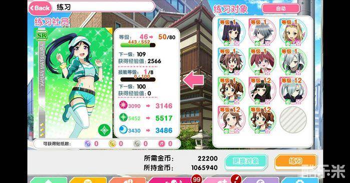不需要的卡可以作为陪练来强化卡片,练习的社员的等级会获得提高,作为陪练的卡使用完会消失。 如果陪练和进行训练的卡属性相同,获得的经验值是1.2倍。