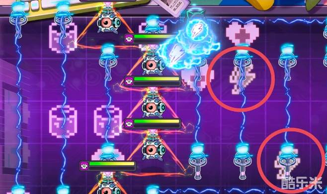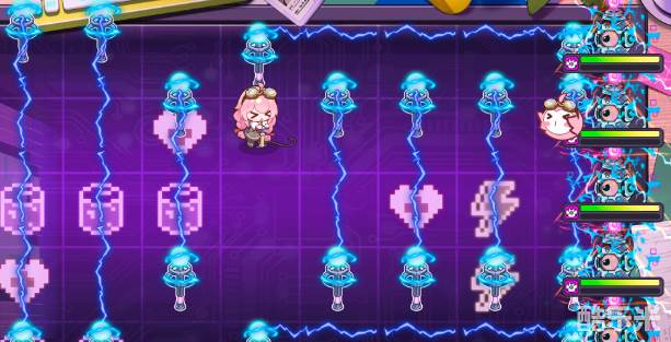 其中地图右侧会刷新闪电图样的格子,将角色移到该格子上大概1秒左右就会生产出用来开大的能量瓶。一定要马上将千竹移到这种格子上收取能量瓶。