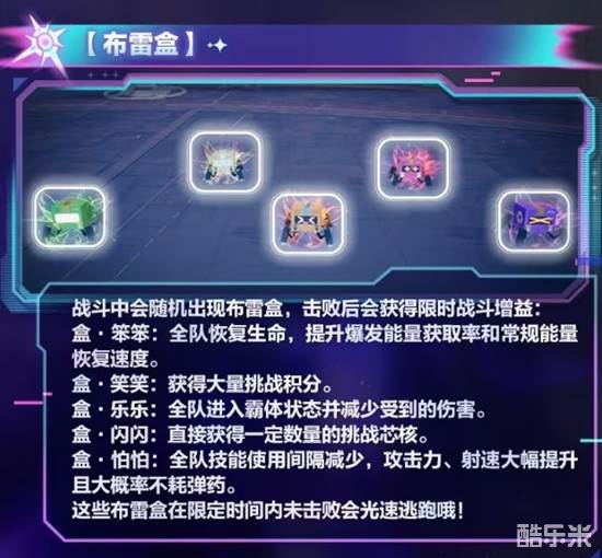 战斗中会随机出现布雷盒,击败后会获得限时战斗增益: