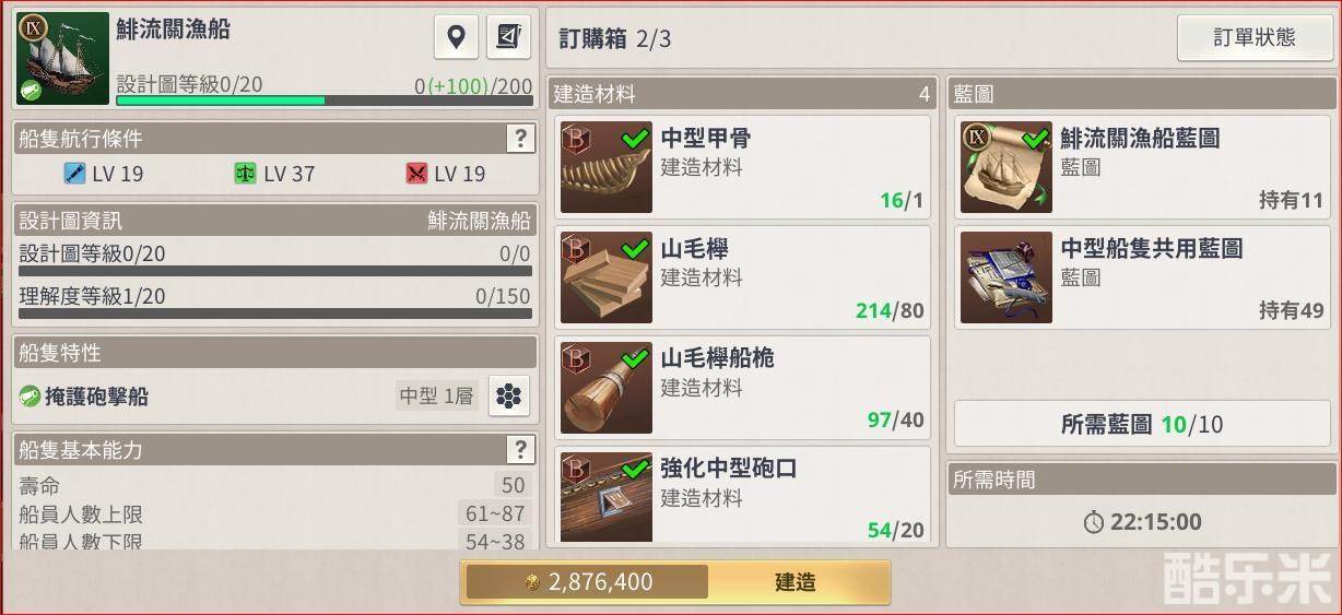 大航海时代游戏中大部分的配件都不是简单的通过掉落或者购买获得的,而是需要玩家亲自到港口工坊去制造。只要进入港口,打开建造或者生产界面就可以看到专门制作配件的工坊系统。不同的配件用不同的材料制作,一般使用金属、木材、布料等基本资源,高阶配件还需要使用特殊的稀有商品。配件制作需要时间,所以很多老玩家会提前批量排队制作,防止更换船只或者升级时出现长时间等待。下面和酷乐米小编一起来看看吧