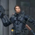 换弹匣时,左手将旧弹匣拔出,机匣中央的红色发光装置将被带出一抹红色残影,新弹匣旋转后快速放回,拉动枪栓,动作快速麻利,尽显天罡校尉的杀伐果决。