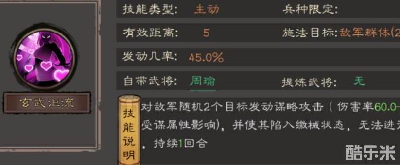 • 效果:对敌军2目标发动谋攻(伤害受谋属性影响),并使其陷入混乱(无差别攻击),持续1回合