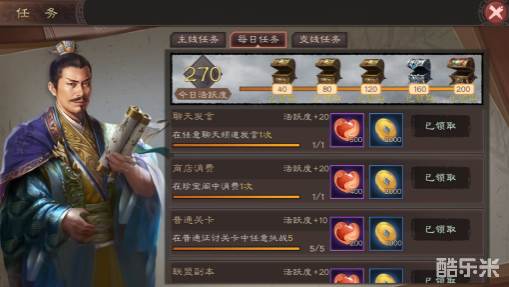 每日任务推到第四章后解锁每日任务,完成任务领奖励,将武将等级拉到25级(核心提升点)。