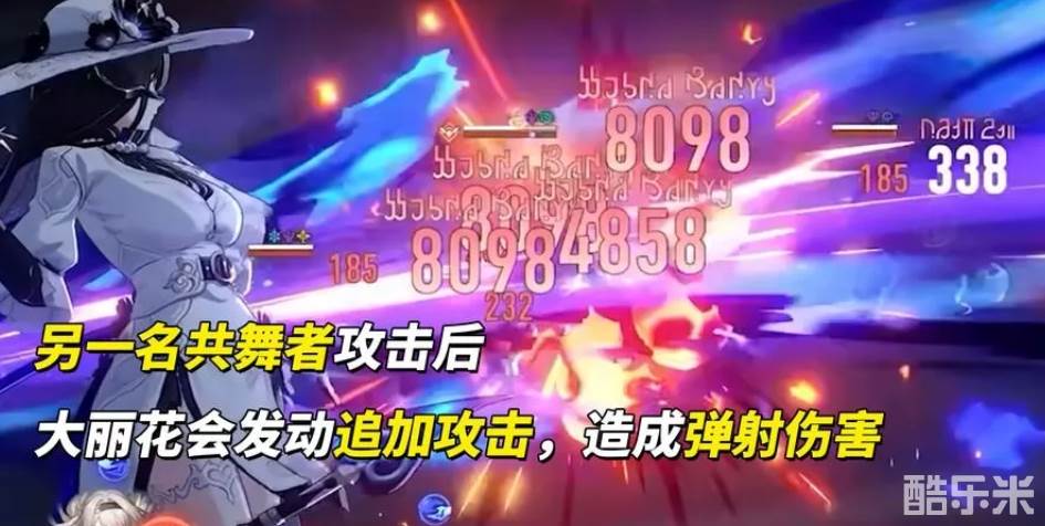 被动天赋,选定1名角色与大丽花一同成为【共舞者】,攻击会基于削韧值额外造成1次超击破伤害。当另一位【共舞者】行动时,大丽花会发动追加攻击,造成弹射伤害。