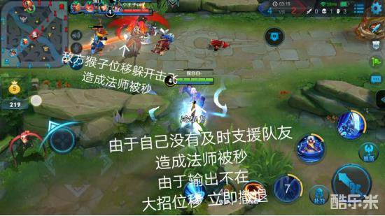 夏侯惇既有稳定的单体和群体控制,还能打出一定的真实伤害,是前中期让我军获取优势的秘密武器!但是在前期夏侯惇的保人能力不强,前期保护队友的最佳方式就是在敌人GANK前掩护其撤退,避免同敌人正面冲突。在本局对战中,由于猴子灵活的躲避小白的技能,导致我方法师被秒。但是由于我们的输出不在,所以小白迅速用大招撤离。