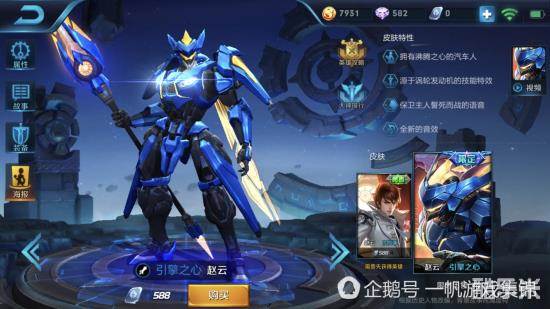 赵云七款皮肤中最出色的莫过于这款皮肤了吧,登场时的跑车造型加上科幻的外观,都给这款皮肤的特效加分不少,当然机甲皮肤不止这一款,无论是吕布还是孙尚香的机甲皮肤都是相当炫酷!
