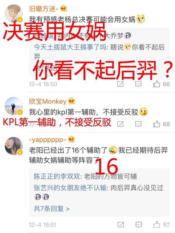 除了赛事中老阳使用的这些常规辅助英雄,较早的时间就有粉丝挖出老阳用后羿,玄策打辅助,网友因此对他做出评价“万物皆可辅”。在胜者组决赛前几天更有粉丝挖出老阳用女娲辅助,老阳会不会在总决赛使用女娲辅助也成为最大的赛事看点之一。