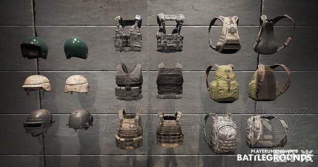 防具包括防弹衣及头盔,从1级到3级防御能力依次增加。背包也是从1级至3级,容量依次增加。
