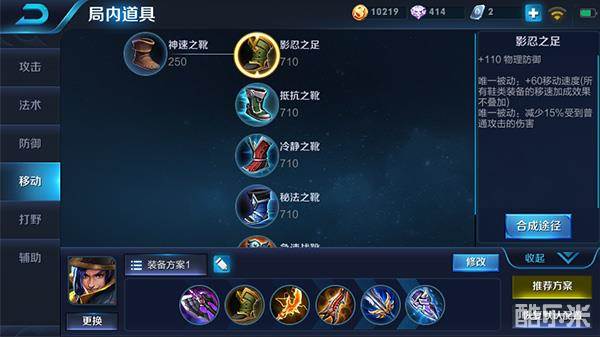 六神装:暗影战斧、影忍之足、闪电匕首、无尽战刃、破军、冰痕之握