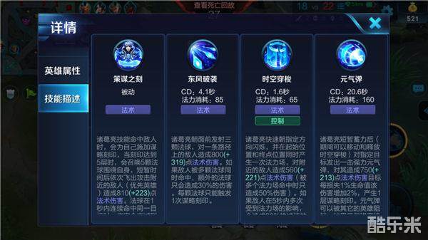 诸葛亮是一个很强大的法师英雄,拥有超强的收割能力,凭借灵活的走位也能为相当可怕的人物。