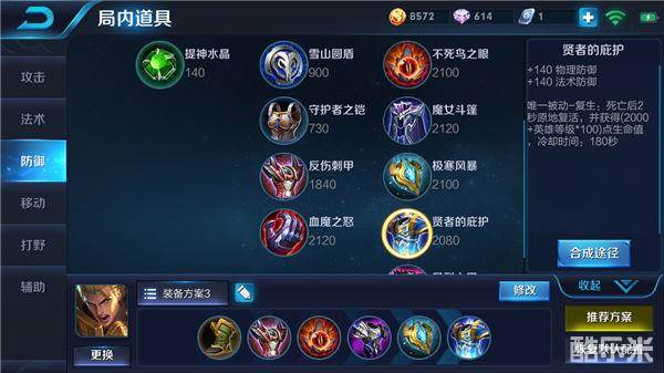 贤者的庇护可以让亚瑟被击杀之后迅速复活,并为自身立即回复一定百分比的生命值,与不死鸟之眼的被动效果结合之后,可以瞬间为亚瑟回复大量的生命值。