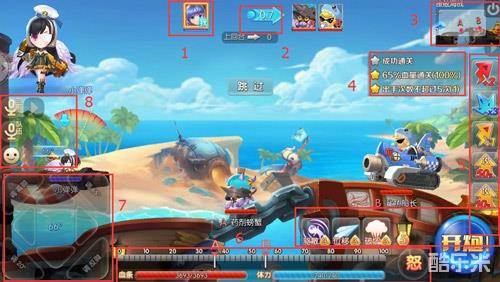 5)技能键:供玩家进行自由搭配,能够对打出炮弹的次数、一次打出的炮弹数进行选择,同时能选择下回合的行为。技能会消耗体力,部分技能有回合CD或者使用限制。