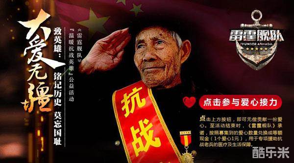 此次《雷霆舰队》携手铁血老兵公益基金、铁血网等发起的 “爱心接力”活动,不仅颠覆了传统的爱心募捐方式,更是中华民族博大精深、源远流长的精神财富与手游娱乐结合的新型表现形式。《雷霆舰队》希望藉由公益“严肃”与手游“娱乐”的有机结合,唤醒业内游戏人乃至社会各界人士对抗战老兵以及抗战历史的重视,共同将历经历史岁月淬炼而成的中华精神文化瑰宝传承下去。