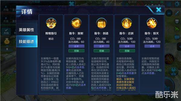 女娲在指定位置创造矩阵空间,能在短时间内持续阻止敌人通过,矩阵空间消失时或其他技能触碰到矩阵空间,将会引发爆炸,对附近的敌人造成法术伤害,女娲每提升一定的法术攻击,会延长矩阵空间的持续时间。