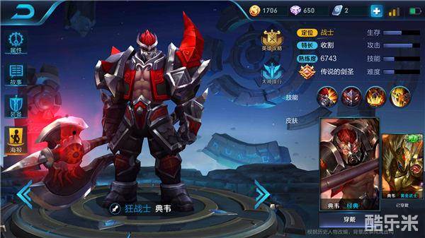 典韦是一名狂战士,简单粗暴,十分容易上手,因为强悍的真实伤害机制受到众多玩家的青睐。一技能可以提升移速,让典韦能灵活的输出,持续消耗敌人,并且能解除自身受到的控制效果,让典韦有充足的反应时间去打出高额的伤害。