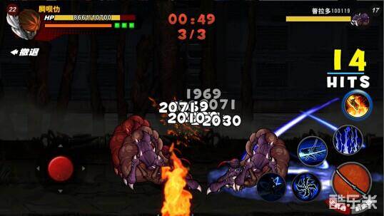 上一招差不多释放完毕前要退到怪物的边上,才能使用风魔手里剑这一招+普通攻击,在关卡推荐战力相符的情况下这样一轮下来基本就能把怪物干掉。如果还差一点点血基本都是普通攻击连击完吧。