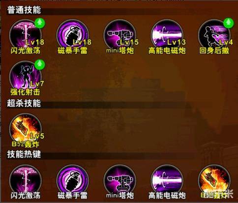 超杀—B52轰炸:呼叫空中炮火援助,对全屏照成伤害,消耗一颗怒气豆。