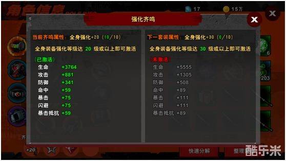强化:使用金币强化,可以提升装备基础属性。(整套强化20以上还有齐鸣效果喔!)