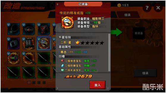 超凡特工主界面有个装备改造,点击可以对装备进行强化、升星、镶嵌、继承。