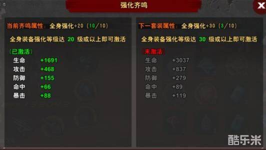 首款超级英雄硬派格斗手游《超凡特工》初期装备更换的频率较大 ,每次更换装备能提升的战力并不明显,想要全面提升自己的属性,就需要对自己的装备进行强化, 能大大提高战力的系统是什么?!毋庸置疑的肯定是小编我要介绍的这个【强化齐鸣】:当玩家身上所有的装备达到整十强化级别后,能触发装备齐鸣效果。以10级为一阶递增,强化递增越高,触发齐鸣的效果越大。