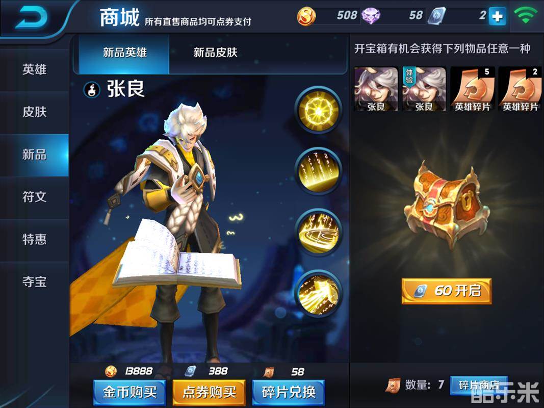 在每个版本更新后会推出新英雄,新英雄会在会在商城页面中的新品栏中出现,在这里可以使用点券来开宝箱,宝箱中会掉落新英雄、新英雄体验卡、英雄碎片*5、英雄碎片*2,如果运气好的话可以直接抽取到英雄,抽取不到也会抽到英雄碎片,碎片在集齐到一定数量后也是可以使用英雄碎片来兑换英雄的。