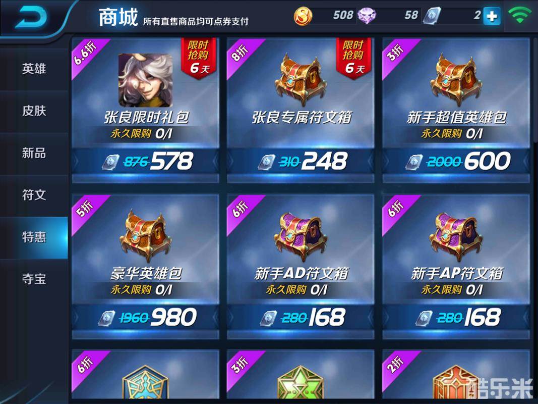 如果想要一次性来购买大量英雄,也就是打包英雄,我们可以在特惠界面来购买礼包,每个版本更新后都会推出一系列非常划算的礼包,新手如果想要集齐英雄在这里开始入手是个不错的选择。