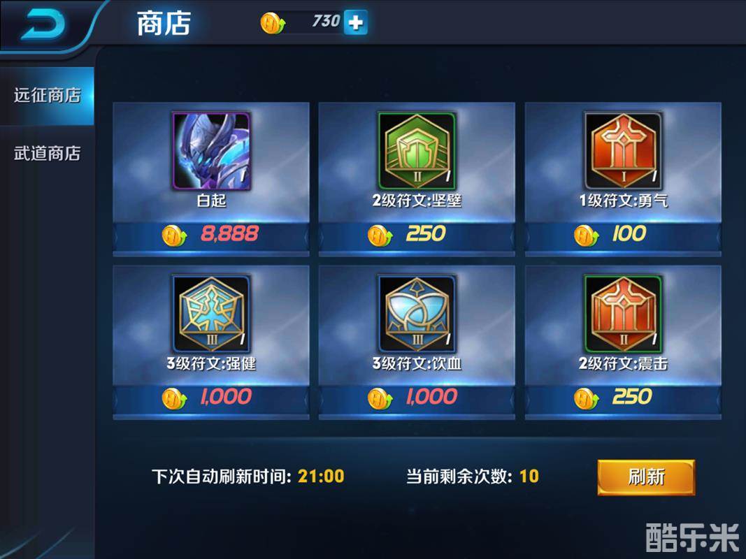 在武道商店和远征商店中,我们可以通过日常的武道大会和六国远征收集远征币和武道币,在这两个商城中可以分别使用武道币购买老夫子,使用远征币购买白起,白起是一个团控型坦克,在打团中非常的出色,老夫子则是一个近战输出战士,非常善于切入和追击,有不错的攻击力和攻速,两位英雄都是比较强力的英雄,建议收集起来。