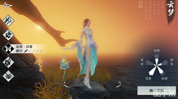 盈盈而起,袅袅而来,那是云梦在施展轻功,动作轻柔灵动,让人沉寂温柔河中,大轻功如化蝶轻舞,在衣衫摇曳间,快速为队友进行回复治疗,原来战斗竟也能成为一场美梦。