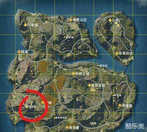 而再往下一些地方,就有5间民房了,5间民房资源方面差不多,而红色圈范围内的两件房子相对应刷出来的物品会比较好,而且外面有围栏和障碍物,人在屋子外也能躲避一下周围赶过来的人,顺便有武器的可以直接和他开战,占领这地势,所以胜率也高一些。