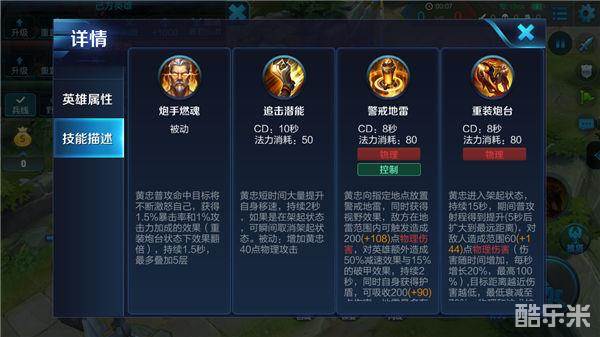 解析:黄忠的普攻命中会不断为自己增加暴击率和攻击力,而且炮台状态下效果翻倍,被动效果让黄忠在利用普攻输出时战斗能力不断加强,利用普攻可以打出超高的输出伤害。