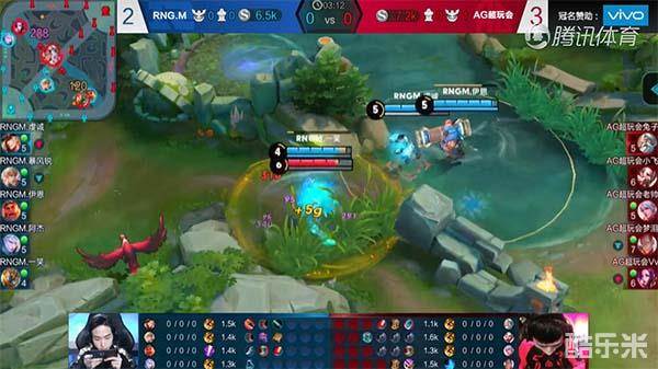 3分10秒的时候,RNGM.虔诚使用马可波罗快速清掉了下路兵线,之后配合队友在河道的草丛进行埋伏,成功抓到了落单的AG超会玩小飞的曹操,控制住曹操后,马可波罗一套技能击杀曹操,直接拿下了一血。