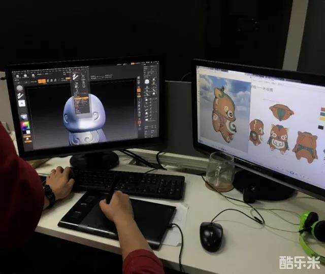 手稿方案确定之后,会交由3D设计师进行建模。建模过程中,设计组针对3D模式下产品呈现的每一个细节再次反复的推敲和调整。游戏中的游戏建模无需考虑现实的物理和材质,因此设计师必须在游戏元素和现实效果中间取舍,进行二次设计和创作,使周边既符合游戏设定,在现实中也能保持其憨态可掬的形象。