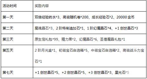 活动内容:开服7日内角色升级达到指定等级,即可领取奖励。