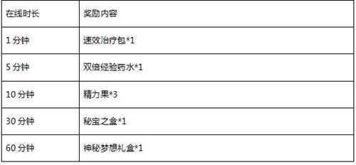 活动内容:每天达到在线时间,即可领取在线奖励,在线时间越长,奖励越好。