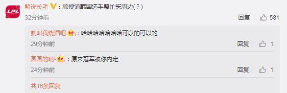 解说长毛对网友吐槽进行补充:“顺便请韩国选手帮买周边”
