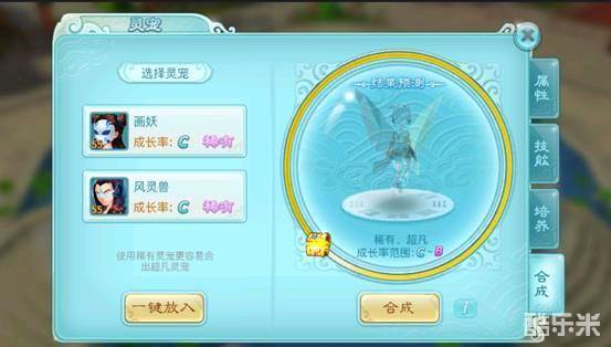 说到这里,大家应该对灵宠的合成步骤大致了解了。想合成出理想灵宠,不止需要运气,也是需要按部就班的。意思就是你再怎么运气好,也不能随意乱合成,合成前的两只灵宠切忌档次悬殊过大。关于此点,游戏中有个很好的设计,就是: