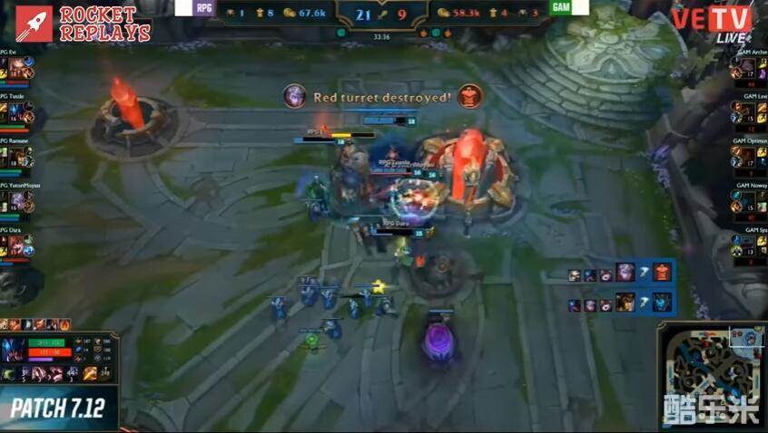 在昨天下午的小组赛中,GAM对阵了日本夏季赛第一名的RPG战队,RPG战队也是一支日本老牌队伍了,2012年成立至今,参加了各种国际赛事,虽然成绩并不理想,但随着两名韩援选手加入,和队伍不断累积大赛经验,也成为了外卡赛区不可轻视的力量。在对阵GAM战队的比赛中,从一开始他们就掌握了比赛节奏,经济人头和防御塔都领先,并且游戏中期抓单和推塔颇有强队风范,牢牢限制了凯南分推战术,最终以21-9的大人头优势,轻松赢得了本场游戏。