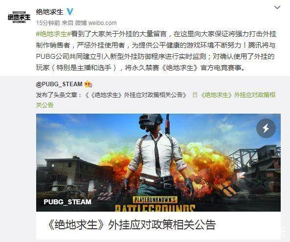 而谈到它最大的“黑点”,就一定是外挂问题。不过近日针对这一问题,作为游戏的国服代理方给出了正式回应:“《绝地求生》国服对外挂零容忍!”