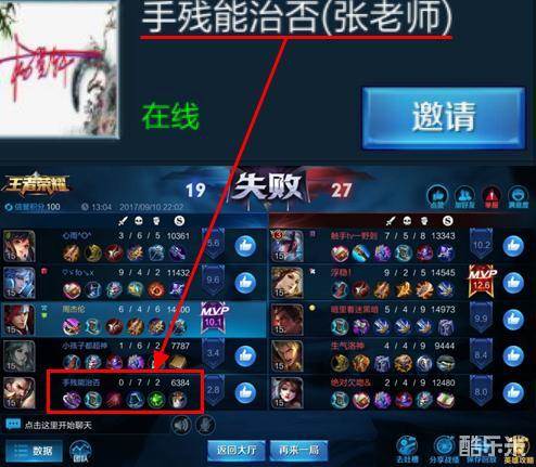 玩家用的是韩信,而他的老师用的是曹操,战绩0-7,虽然玩家已经很尽力,但仍然是输了。