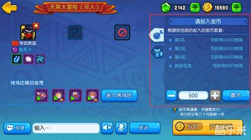 每局天黑大冒险结束后,都将会根据排名以及投资金币的数量进行结算,玩家能够获得相应数量的【烤鸡】。而这经历千辛万苦所获得的烤鸡,可以在累计至一定数量后前往烤鸡店进行兑换,烤鸡店内有许多超稀有的宠物碎片!