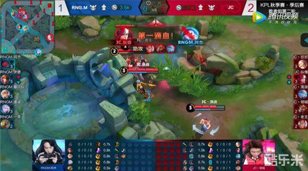 蓝色方梦奇又到红色方上野区想偷野,不料遭到了围攻,这时候韩信从下野区迅速赶往支援,在二技能拉近距离后,直接使用一技能将其挑飞,加上一击普攻成功将其击杀,拿下了一血。